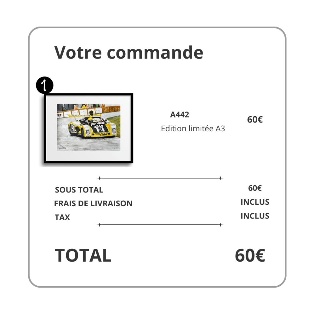 Passionné(e) par l’univers automobile et moto, je crée des illustrations uniques et personnalisées pour les amateurs, les collectionneurs et les passionnés. Chaque dessin est réalisé avec soin et peut être expédié partout dans le monde. Que vous cherchiez un cadeau original ou une œuvre pour embellir votre garage, vous êtes au bon endroit !